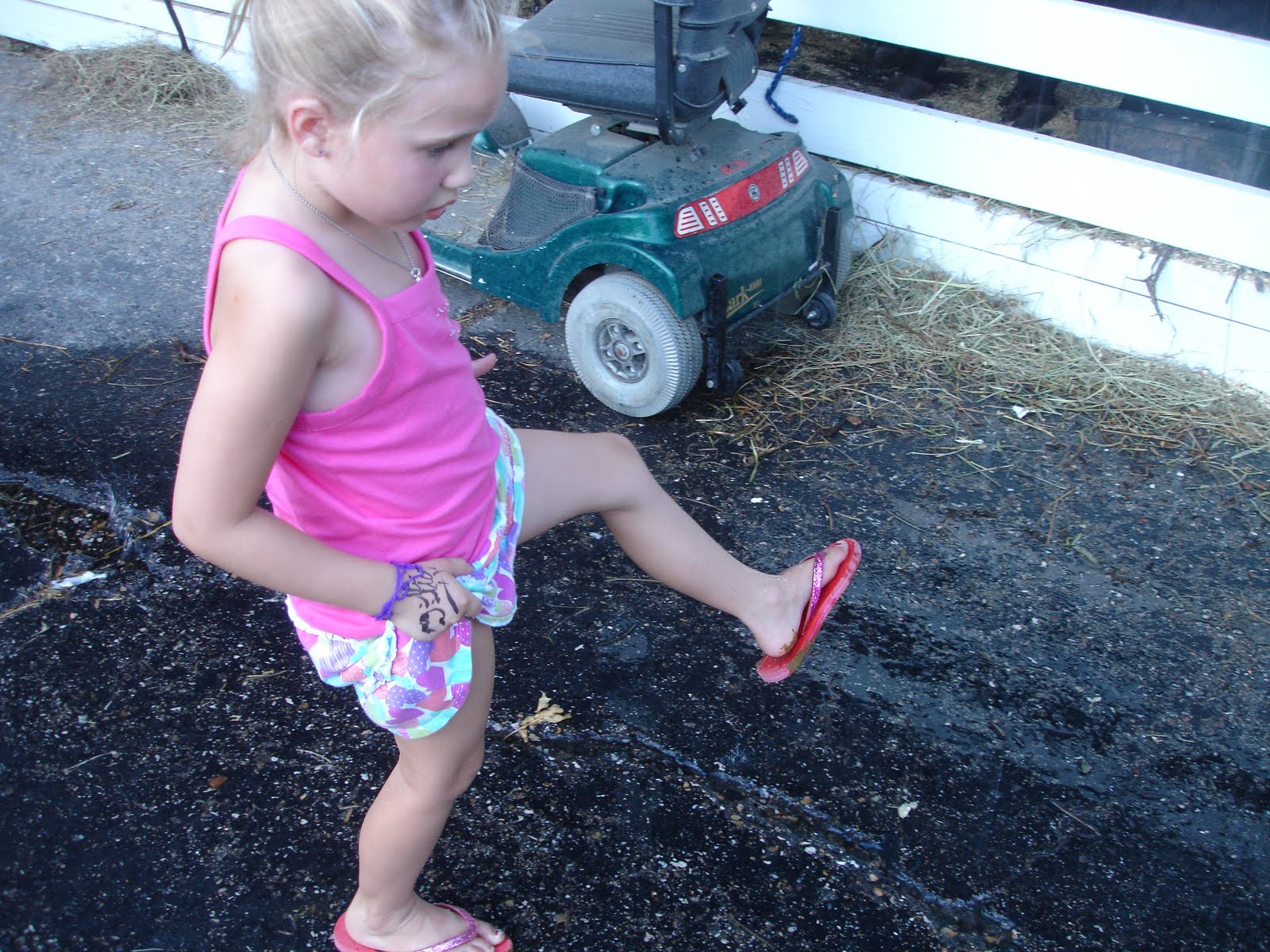 The kids love going to the fair, even when its over 100. Willie the Wildcat was there and all the kids got excited - until Kendall got too close. The big kids with Willie after he signed their hands:)